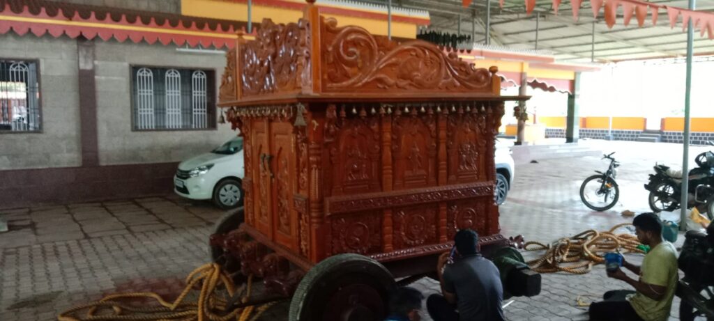 ಮರುದಿನ ಬೆಳಿಗ್ಗೆ ಜಾತ್ರೆಯ ದಿನ ಪ್ರಾತಃಕಾಲ ಐದು ಗಂಟೆಗೆ ಮಾರಿಯಮ್ಮ ವಿರಾಜಮಾನಳಾದ ರಥವನ್ನು ಊರಿನ ಮೊಗವೀರ ಬಂಧುಗಳು ಎಳೆದುಕೊಂಡು ಒಂದು ಕೀಮಿ ದೂರದ ಮಾರಿಗದ್ದುಗೆಗೆ ತೆಗೆದುಕೊಂಡು ಹೋಗುತ್ತಾರೆ
