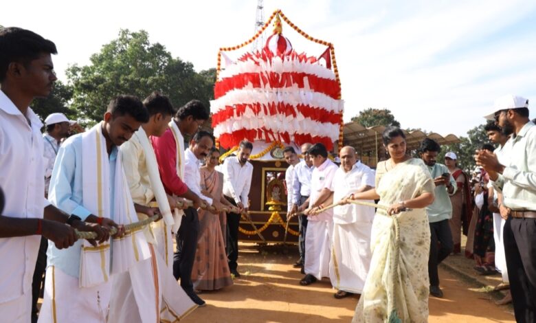 ಕುಂದಾಪುರ ಎಜುಕೇಶನ್ ಸೊಸೈಟಿಗೆ ಸುವರ್ಣ ಸಂಭ್ರಮದ ಹಿನ್ನೆಲೆಯಲ್ಲಿ ಎಚ್ಎಂಎಂ ಶಾಲೆ, ವಿಕೆಆರ್ ಶಾಲೆ, ಆರ್.ಎನ್.ಶೆಟ್ಟಿ ಪದವಿ ಪೂರ್ವ ಕಾಲೇಜು, ಡಾ। ಬಿ.ಬಿ. ಹೆಗ್ಡೆ ಪದವಿ ಕಾಲೇಜು ಸಂಯುಕ್ತವಾಗಿ ಹಮ್ಮಿಕೊಂಡ ‘ಸುವರ್ಣ ಸಂಭ್ರಮ’ ಕಾರ್ಯಕ್ರಮದ ಪುರ ಮೆರವಣಿಗೆಗೆ ಗುರುವಾರ ಕುಂದಾಪುರ ಗಾಂಧಿ ಮೈದಾನದಲ್ಲಿ ಕುಂದಾಪುರ ಸಹಾಯಕ ಕಮಿಷನರ್ ರಶ್ಮೀ ಎಸ್.ಆರ್.ರಥದ ಮಾದರಿಯನ್ನು ಎಳೆಯುವುದರ ಮೂಲಕ ಚಾಲನೆ ನೀಡಿದರು.