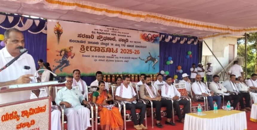 ವಕ್ವಾಡಿ ಸರಕಾರಿ ಪ್ರೌಢಶಾಲೆಯಲ್ಲಿ ಕುಂದಾಪುರ ತಾಲೂಕು ಮಟ್ಟದ 14 ಮತ್ತು 17ರ ಬಾಲಕ -ಬಾಲಕಿಯರ ಕ್ರೀಡಾಕೂಟ 2025-26 ಉದ್ಘಾಟನೆ ಶಾಲಾ ಶಿಕ್ಷಣ ಇಲಾಖೆ, ಕ್ಷೇತ್ರ ಶಿಕ್ಷಣಾಧಿಕಾರಿಗಳ ಕಛೇರಿ…